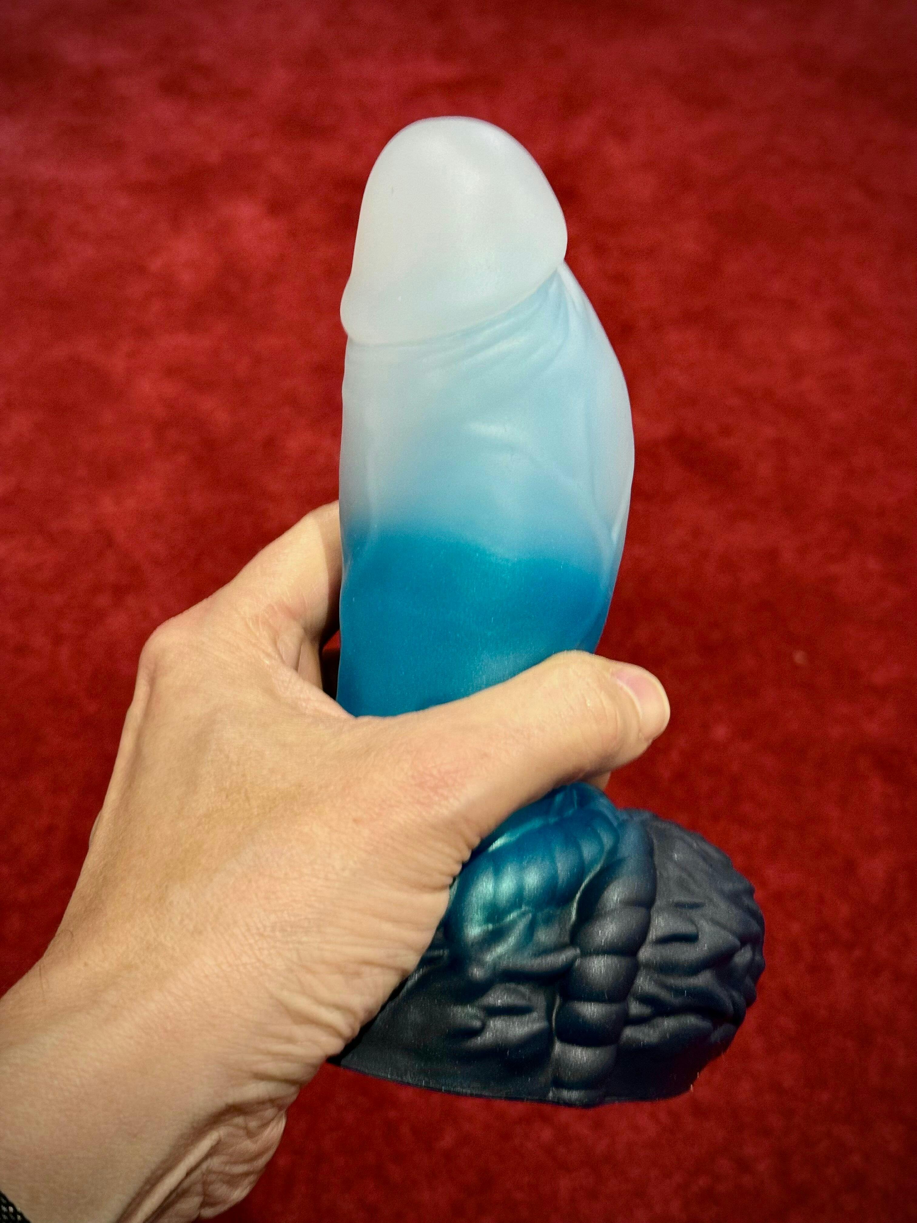 Die Qualität ist es nichts Ungewöhnliches bei Nothosaur-Toys … einfach perfekt! Keine Mängel, der Saugnapf tut, was er soll, und die Farbe … ich habe „Winter“ bestellt. Er ist wirklich ein „Eye-Pleaser“. Die Farbe verläuft von Schwarz über ein wunderschönes, eisblau schimmerndes Blau bis zu einem halbtransparenten Weiß. Bei meinem Toy kann man durch die weiße Spitze einen bläulichen Kern erkennen.