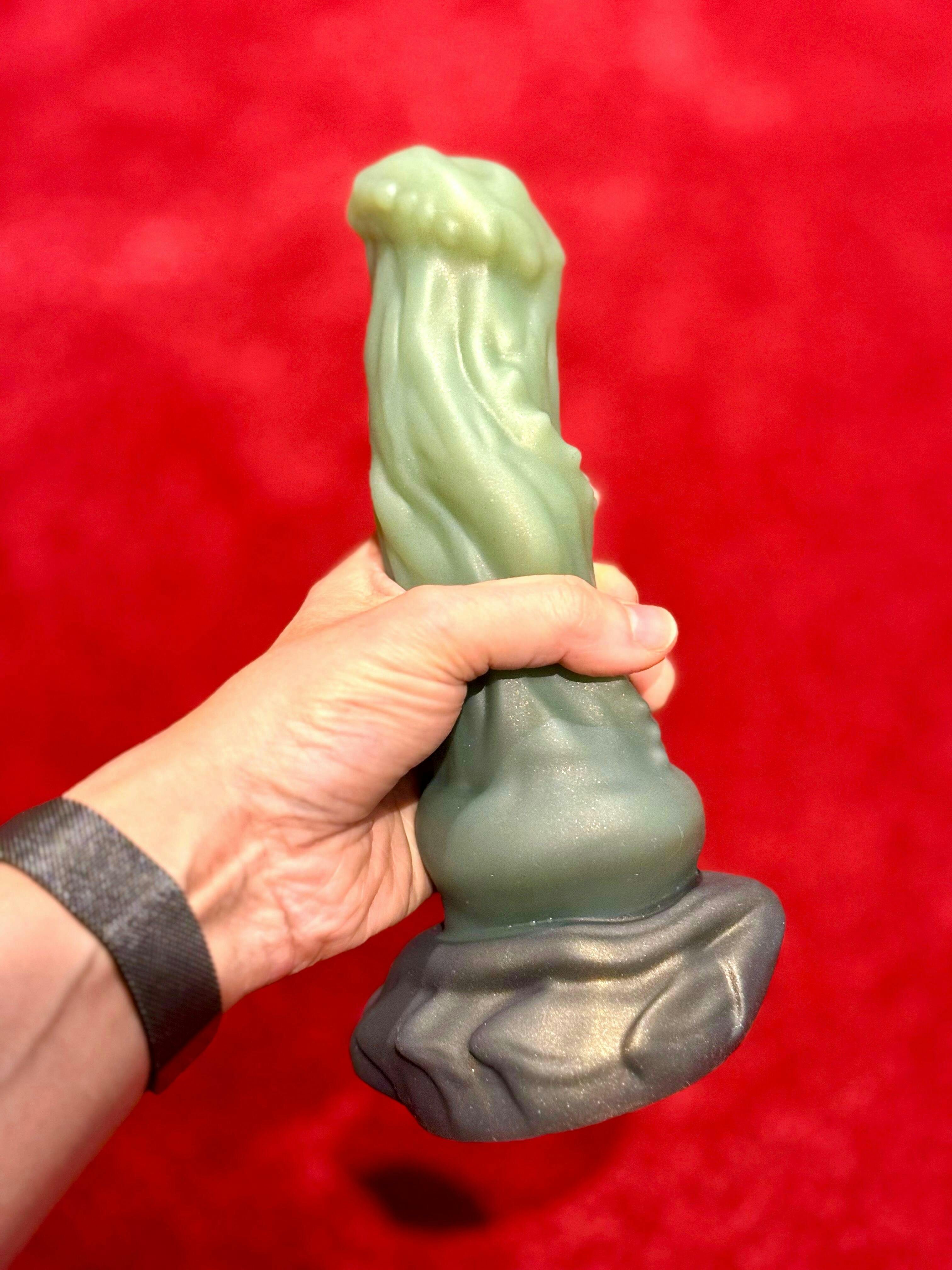 – Comfortable to hold and well-sized. The textures, knot, and fang details feel enjoyable and add extra stimulation. The color complements the design nicely, enhancing the overall appeal.